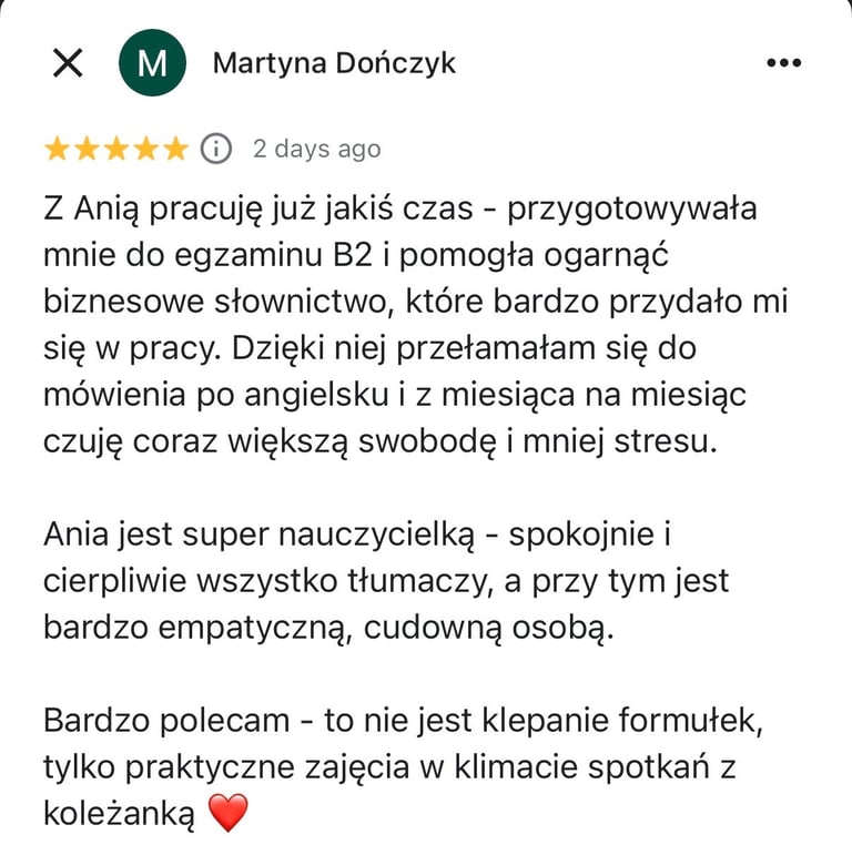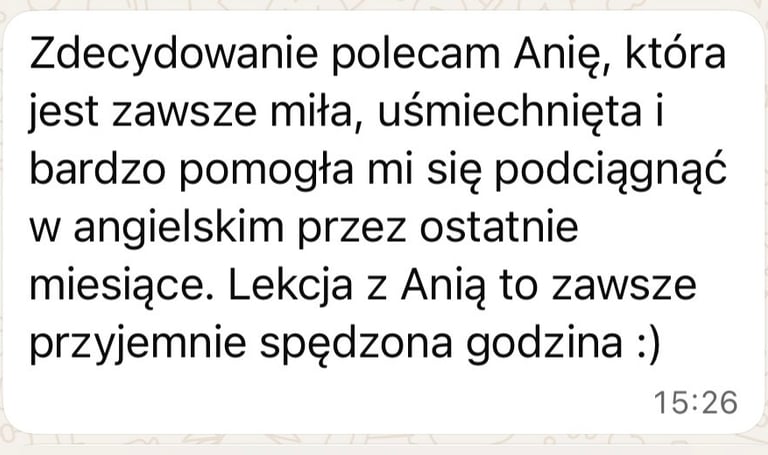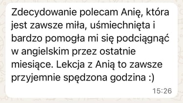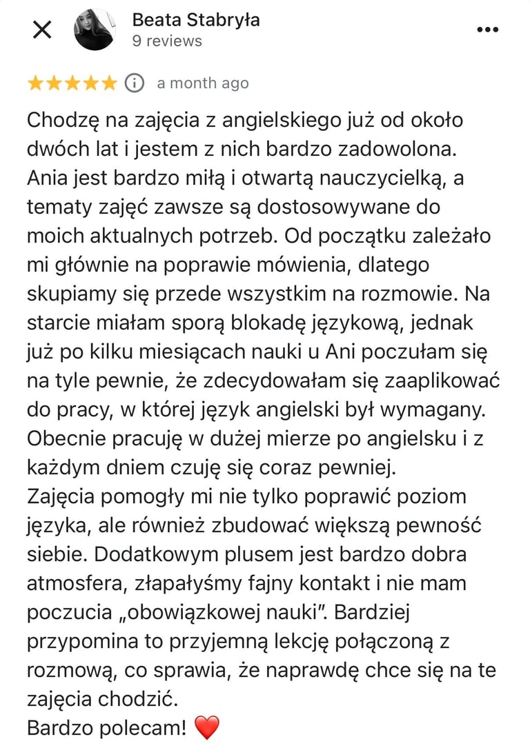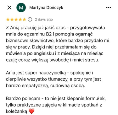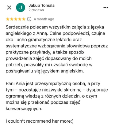 "Zajęcia pomogły mi nie tylko poprawić poziom języka, ale również zbudować większą pewność siebie."